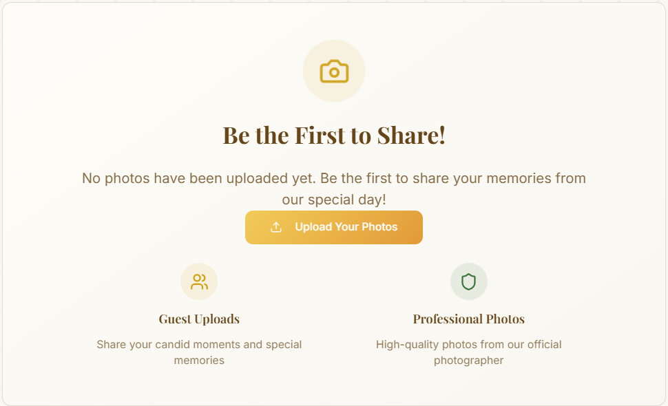 Guest & Photographer Uploads: Attendees could upload their candid shots in real time, while professional photographers could directly back up their event coverage.